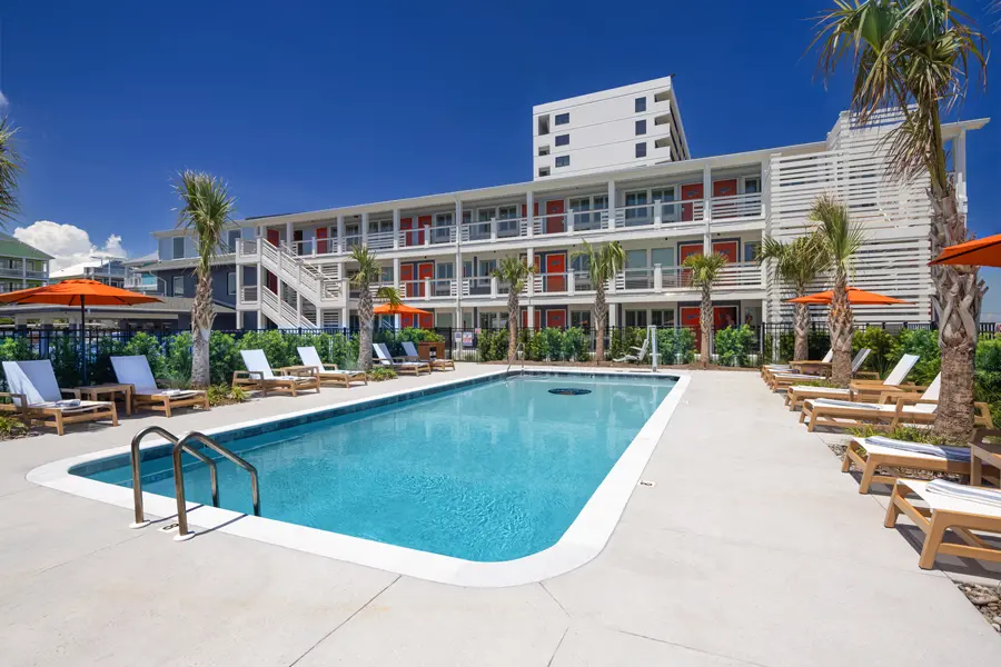 Carolina Beach’s newest boutique hotel is where a relaxed coastal getaway meets thoughtful sustainability. Just steps from the ocean and minutes from Fort Fisher, our newly renovated hotel offers a fresh, laid-back atmosphere with meaningful touches. Lounge by our spacious pool, wander through Alexa’s Garden, or explore the area on a beach cruiser bike. Whether you’re here to unwind or for adventure, The Oceaneer provides the perfect place for you to experience Carolina Beach in a whole new way.