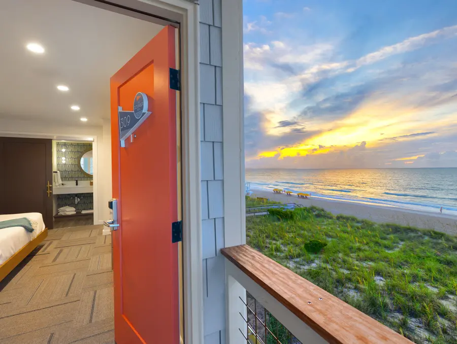 The renovation of The Oceaneer took form from a simple idea: that a beach hotel should love the beach back. Our design ethos blends natural textures, breezy comfort, and sustainability—from salvaged materials and dune-preserving landscaping to low-waste and native plant gardens. Every detail reflects our care for the coast and our connection to the Carolina Beach community. This is a stay that respects the shoreline, supports the local community, and invites you to slow down and explore.